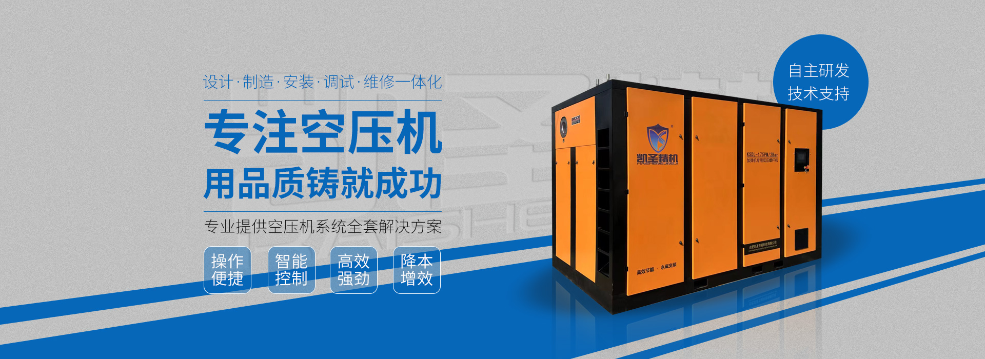合肥凱圣節(jié)能科技有限公司是從事永磁變頻螺桿壓縮機系統(tǒng)的設(shè)計、制造、安裝、調(diào)試、維修與一體的公司。 在多年的螺桿空壓機研發(fā)與推廣歷程里,凱圣聚集和培養(yǎng)了大量壓縮機技術(shù)設(shè)計和管理人員,迅速發(fā)展成為集研究、生產(chǎn)、銷售、服務(wù)等環(huán)節(jié)為一體、嚴格按照標(biāo)準執(zhí)行的企業(yè),公司成立開始,即以滿足客戶的實際需求為己任,大力開拓國內(nèi)外節(jié)能型空壓機市場,并始終保持創(chuàng)新精神,全力研發(fā)更為節(jié)能的螺桿式空壓機,努力站在空壓機節(jié)能領(lǐng)域的排頭位置。 應(yīng)用范圍:公司產(chǎn)品廣泛應(yīng)用于機械、輕工、紡織、食品、石油、化工、冶金、礦山、電力、城建、醫(yī)學(xué)研究和科研等各行業(yè)中,將為節(jié)約能源做出巨大貢獻。公司秉承“信譽至上,...